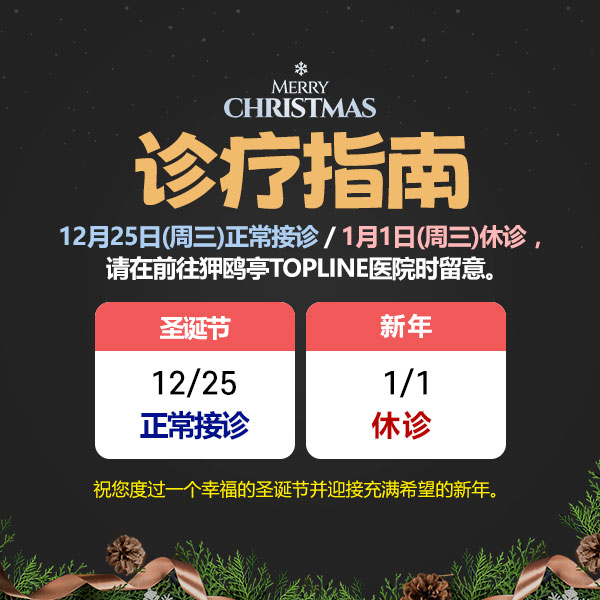 狎鸥亭TOP LINE医院12月25日正常诊疗,1月1日休诊。