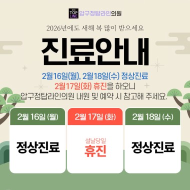 압구정탑라인의원 2월 진료 안내 (2/16,…